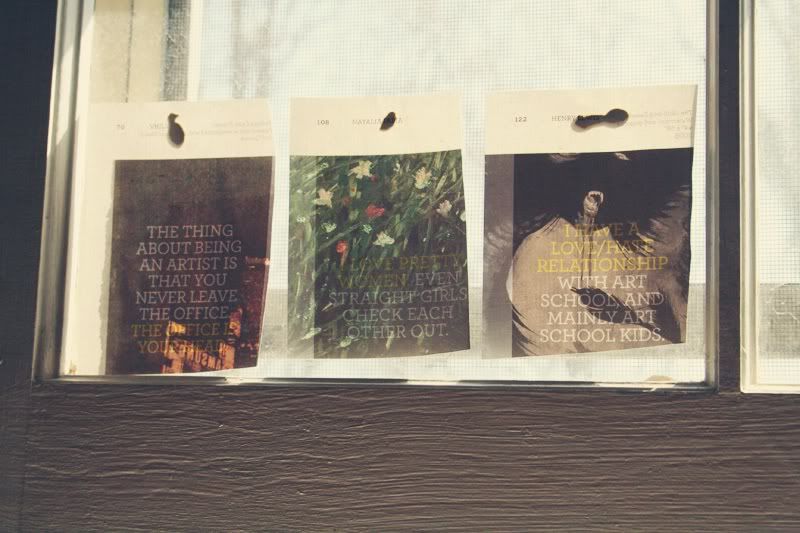 our new "flair"! quotes on my window. spent the day with B. We cleaned. ice coffee & slippers & sun. there are still tiny snow piles everywhere. we like to read bed, bath, & beyond catalogs.